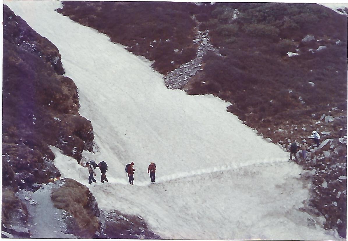 ढूंढाहून पूढे खरा साहसी प्रकार आहे. तलहौटी कॅम्पकडे जाण्यासाठी चढ उताराची परिसीमा होते. त्यातच ७० अंशाच्या कोनात असणाऱ्या बर्फाळ उतारांना समांतर चालायचे, उजवीकडे खडे बर्फाळ पर्वत अन् डावीकडे थेट दरी ! ती पुढे पुढे जाताना सतत खुणावत राहते, बोलवित राहते! ढूंढा, तलहौटी अगदी निसर्गाने नटलेली, अन् अगदी देवभूमीवत वाटणारी स्थळे आहेत. तलहौटीहून थोडे खाली उतरून लेखाथाचला येताना पिवळी जर्द कुरणे उतारांवर पसरलेली दिसतात. त्या जंगलात कुरणावर मुक्तपणे चरणा-या गाई, मेंढ्यांचे कळप, अदृष्यपणे वाहणा-या निर्झरांचे संगीत आणि विविध पक्ष्यांचे मनाला भुरळ पाडणारे आवाज! ज्याला कोणत्याही वाईट गोष्टींचा स्पर्श झालेला नाही असा अतिशय नैसर्गिक, पावित्र्याची, मांगल्याची जाण करून देणारा अवर्णनीय निसर्ग जागोजाग उभा ठाकला आहे.