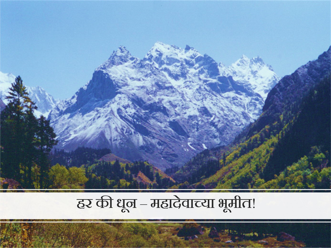 शिव-पार्वतीच्या वास्तव्याने, पदस्पर्शाने पावन झालेली ही भूमी ! हर की धून म्हणजे गिरी-राजशृंगी महादेवाचे व प्रकृती पार्वती-सतीचे मिलन! इथे आल्यावर असे वाटते की, हिमालयाचा विराट देह धारण करून पार्वती परमेश्वर दर्शनेच्छुंना विस्मय, भय अश्या दृष्यांची भेट घडवून संमिश्र आनंदाच्या उर्मीनी परिपूर्ण करीत आहेत. हिमालय जितका मनोरम तितकाच भयावह! हया परस्परविरोधी भावांचा एकत्र समावेश शिव-गौरीच्या हिमालयरूपी विराट देहातच प्रकट झालेला दिसून येतो.