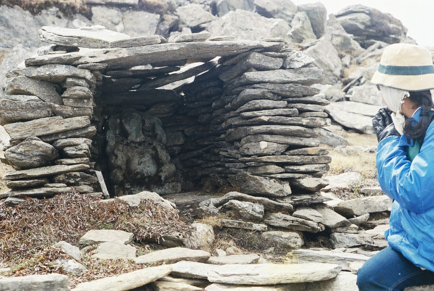 केदार कंठ कडून ढुंढाकडे जाताना शारीरिक स्वास्थ्याचा कस लागतो. हवा विरळ होत जाते. चढ अधिक अवघड होतो. ढग तुमच्या भोवती फेर धरून नाचू लागतात. अन् निसर्ग राजाने ठरविले तर मोठ्या मोठ्या स्वच्छ टपोऱ्या गारा तुमच्या स्वागतालाही हजर असतात. त्यातच वाटेवर जणू तुमचे मनोधैर्य उंचावून टिकवून ठेवण्यासाठी त्या पहाडांमध्ये उंचावर दगडी गजाननाचे अन् शिवाचे प्रांगण तुमची वाट पाहत असते. एवढ्या उंचीवर ही दगडी अतिशय साधी मंदिरे पाहून कुतुहल वाटते. अश्या हया निर्जन स्थळी प्रकृतीने आपणहूनच रचून आपल्या मनाप्रमाणे ही गिरीमंदीरे अधिक निसर्ग शोभायुक्त अन् सुविशाल सजविली आहेत. आपण ख-या अर्थाने नतमस्तक होतो.