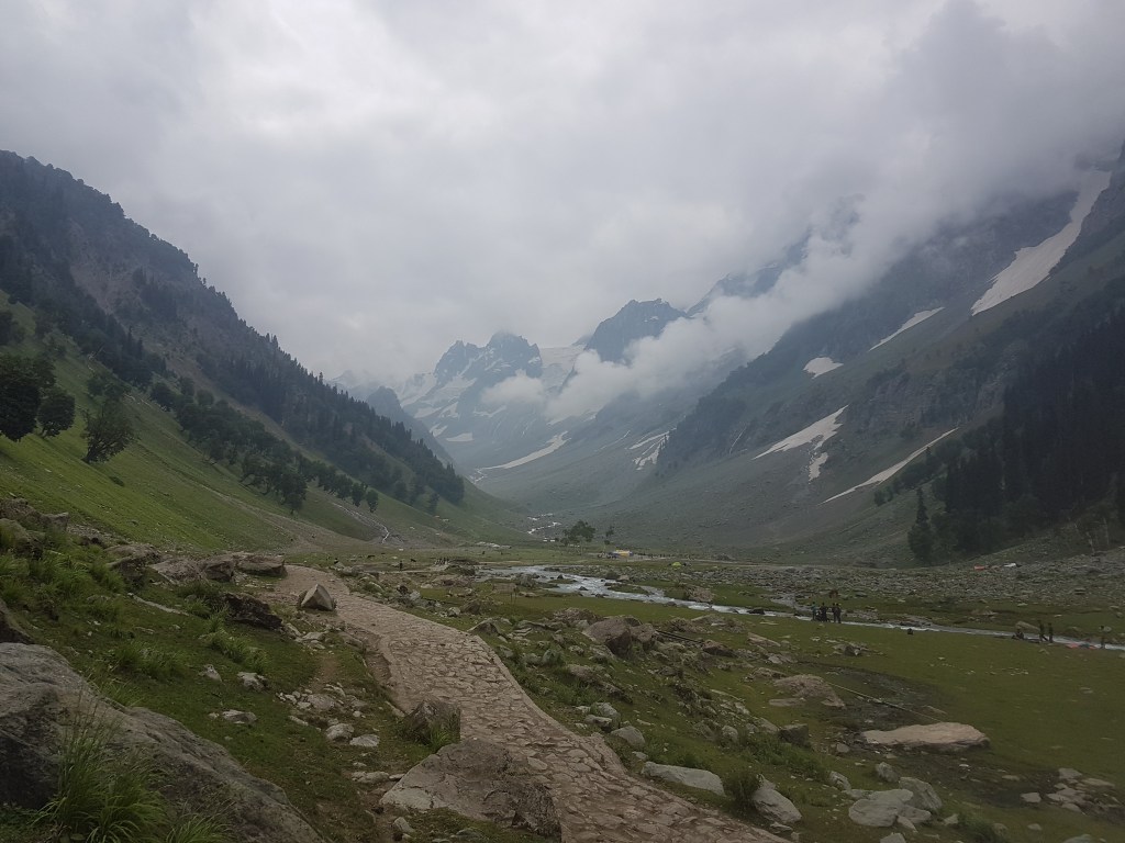 आम्ही परस्परांचे परिचय करून घेतले, ट्रेकिंगच्या अनुभवांची देवाणघेवाण झाली. आमचा ‘केजीएल-६ ’ ग्रुप आता पुढील काही दिवसांसाठी दुर्गम दरी-खोऱ्यांमध्ये वसलेली सरोवरे पहाण्यासाठी तयार झाला! तजिवास ग्लेशिअर्सकडे जाणारा रस्ता फारच निसर्ग रम्य आहे! सर्वदूर पसरलेली पाचूच्या रंगाची कुरणे, देवदार वृक्षांची जंगले आणि चंदेरी हिमाने नटलेली पर्वत शिखरे! ‘ताजिवास’ हे सोनामर्ग मधील पर्यटकांचे खास आकर्षण आहे. अनेक पर्यटक घोड्यावर स्वार होऊन ग्लेशिअर्सच्या दिशेने जाताना दिसत होते. त्यावर हे पर्यटक मौजमजा लुटत होते. आम्ही वरच्या बाजूला जंगलांच्या दिशेने वृक्षांच्या छायेत काही क्षण पहुडलो! मग पुन्हा ग्लेशिअर्स वितळून वाहणार्या एका मोठ्या झऱ्यापाशी विसावलो आणि पुन्हा माघारी परतू लागलो. आमच्या गाईडने माहिती पुरवली, ‘‘ ये जगह बहोत फेमस हुई है मॅडमजी, “बजरंगी भाईजान” के वजह से! आमच्या सहजच लक्षात आले की, चित्रपटाचा काही भाग हया ठिकाणी चित्रित केलेला होता. खूप निसर्गरम्य परिसर होता!