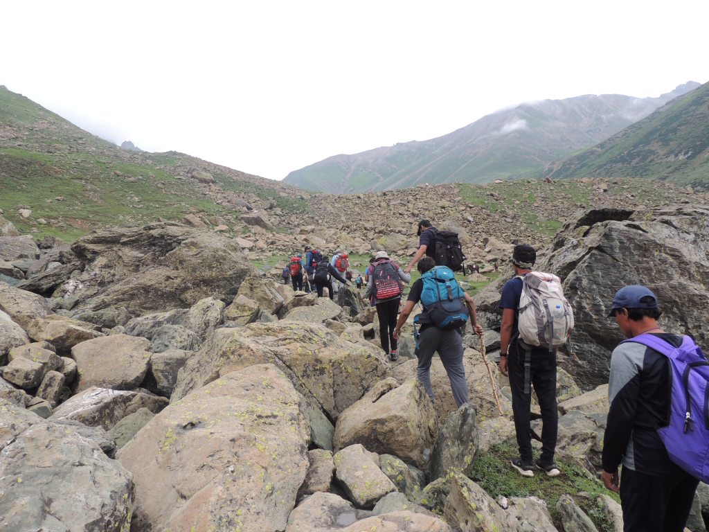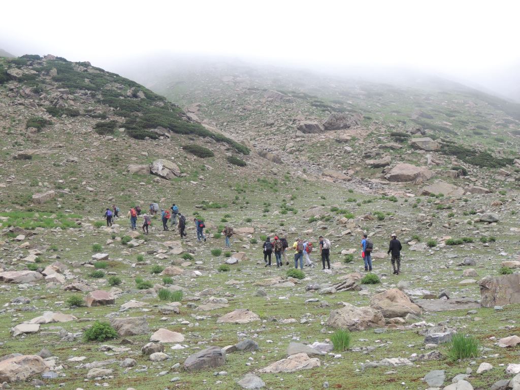 निचनाई कॅम्पवरुन आम्ही सकाळी लवकरच पुढच्या टप्प्यासाठी कूच केले. आदल्या दिवशीचा अनुभव लक्षात घेता सकाळी लवकर मार्गस्थ होणे आवश्यकच होते. त्या निचनाईच्या खडकाळ खोऱ्यातून, नदीपात्रामधून पार होत आम्ही एका डोंगराच्याकडेने चढाई करू लागलो.