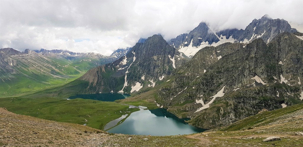 ‘विष्णूसार’ आणि ‘कृष्णसार’ ही दोन्ही जुळी सरोवरे! हिवाळ्यामध्ये गोठून जाणारे हे काश्मीरी भाषेमधील ‘सार’ म्हणजेच ‘सरोवर’, एक अद्भुत असं विस्मय चकित करणारे आश्चर्यच आहे. ग्लेशिअर्समधून निर्माण होणारी स्फटिकासम स्वच्छ चमचमणारे पाणी असणारी ही सरोवरं पाहून आतापर्यंत झालेले शारीरिक कष्ट आपण पार विसरुन जातो. कृष्णसार सरोवरातील पाणी आणि ग्लेशिअर्स हयामधून विष्णूसार सरोवराला पाण्याचा पुरवठा होता. झऱ्याच्या स्वरुपात कृष्णसार सरोवरातून हे पुढे विष्णुसार सरोवरात जाणारे पाणी ‘नीलम’ नदीचा उगमाचे स्त्रोत बनते आणि ही नीलम नदी उत्तरेकडे बडोबपर्यंत आणि पश्चिमेकडे गुरेझ खोऱ्यामध्ये भारत-पाक सीमा रेषांच्या लगत प्रवाही होते. हया जुळ्या सरोवरांमध्ये ब्राऊन ट्राऊट माश्यांची प्रजात मुबलक आहे. काही हौशी स्थानिक काश्मीरी लोक खास परवानगी घेऊन ह्या सरोवरांच्या काठी ट्राउट फिशिंग करण्यासाठी गळ लावून बसतात. हया ट्रेकचे मुख्य आकर्षण म्हणजे ही अल्पाईन सरोवरे- दिवसाच्या वेळेनुसार सूर्यप्रकाश, अस्मानी रंग आणि त्यामध्ये ढगांचे पुंजके हयानुसार बदलणाऱ्या त्यांच्या रंगछटा! सरोवरांच्या परिसरातील हिरवीगार कुरणे उन्हाळ्यामध्ये शेळ्या मेंढ्यांचे आनंदवन बनते! शारीरिक कुवतीनुसार मध्यम ते अवघड श्रेणीमध्ये गणला जाणारा काश्मीर ग्रेट लेकचा ट्रेक म्हणजे खरोखर स्वर्गीय नंदनवनातली सफर आहे. उन्हाळ्याच्या मोसमामध्ये हया काश्मीर ग्रेट लेकच्या ट्रेकसाठी देश-विदेशातून ट्रेकर्स येतात.