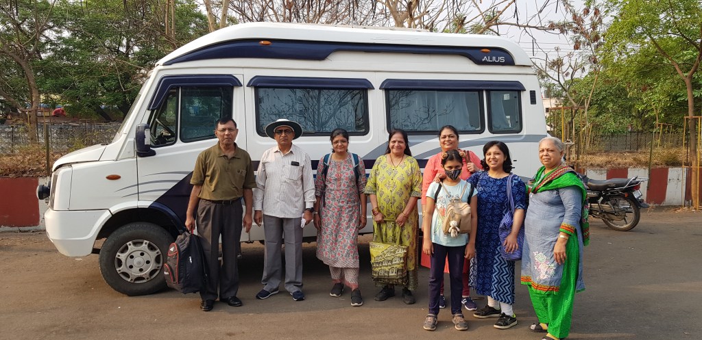 ६ एप्रिलला आम्ही मुंबईहून संध्याकाळी सात वाजता विदर्भ एक्सप्रेसने वर्ध्याकडे निघालो. नाशिकहून आबा गीते सुध्दा त्याच ट्रेनमध्ये आम्हांला भेटले. त्यांच्या सोबत त्यांचे स्नेही श्री.पगार होते. मी बऱ्याच वर्षांनंतर ट्रेनचा प्रवास करीत होते, परंतु टू टीयर अेसी कोच आणि मैत्रिण हयामुळे रात्रभराचा प्रवास सुसह्य झाला. आम्ही सकाळी साडेसात वाजता वर्धा स्टेशनाला पोहोचलो. तिथे तुकाई टुरिझमची आमच्यासाठी नियोजित मिनी बस-टेम्पो ट्रॅव्हलर उभीच होती. आमच्या गाडीचा चालक हाच आमचा वाटाडया होता-कवडू देहारे! अखंड प्रवासात आम्ही ‘जितक्या व्यक्ती तितक्या प्रवृती’ त्याने लीलया झेलल्या!