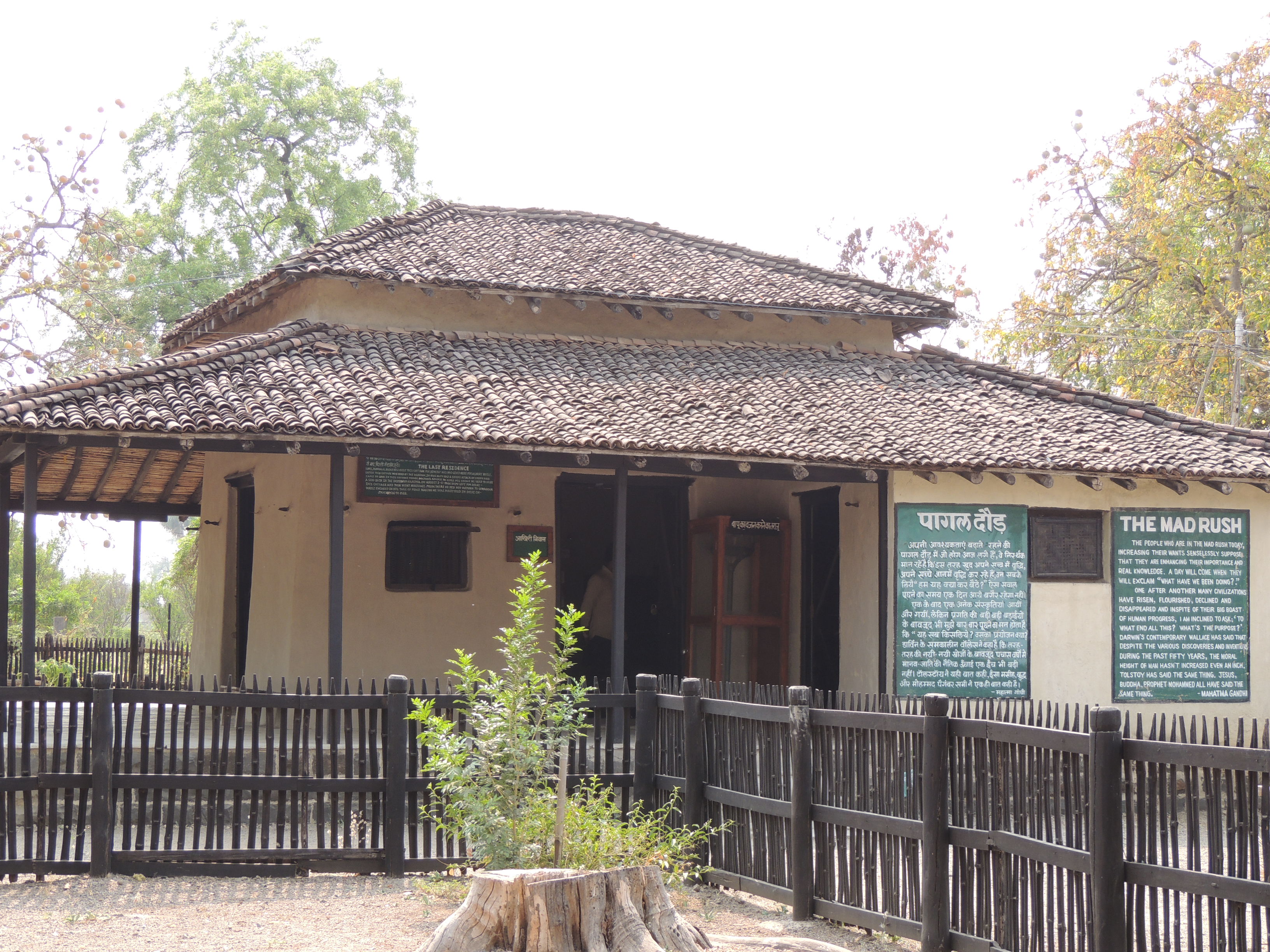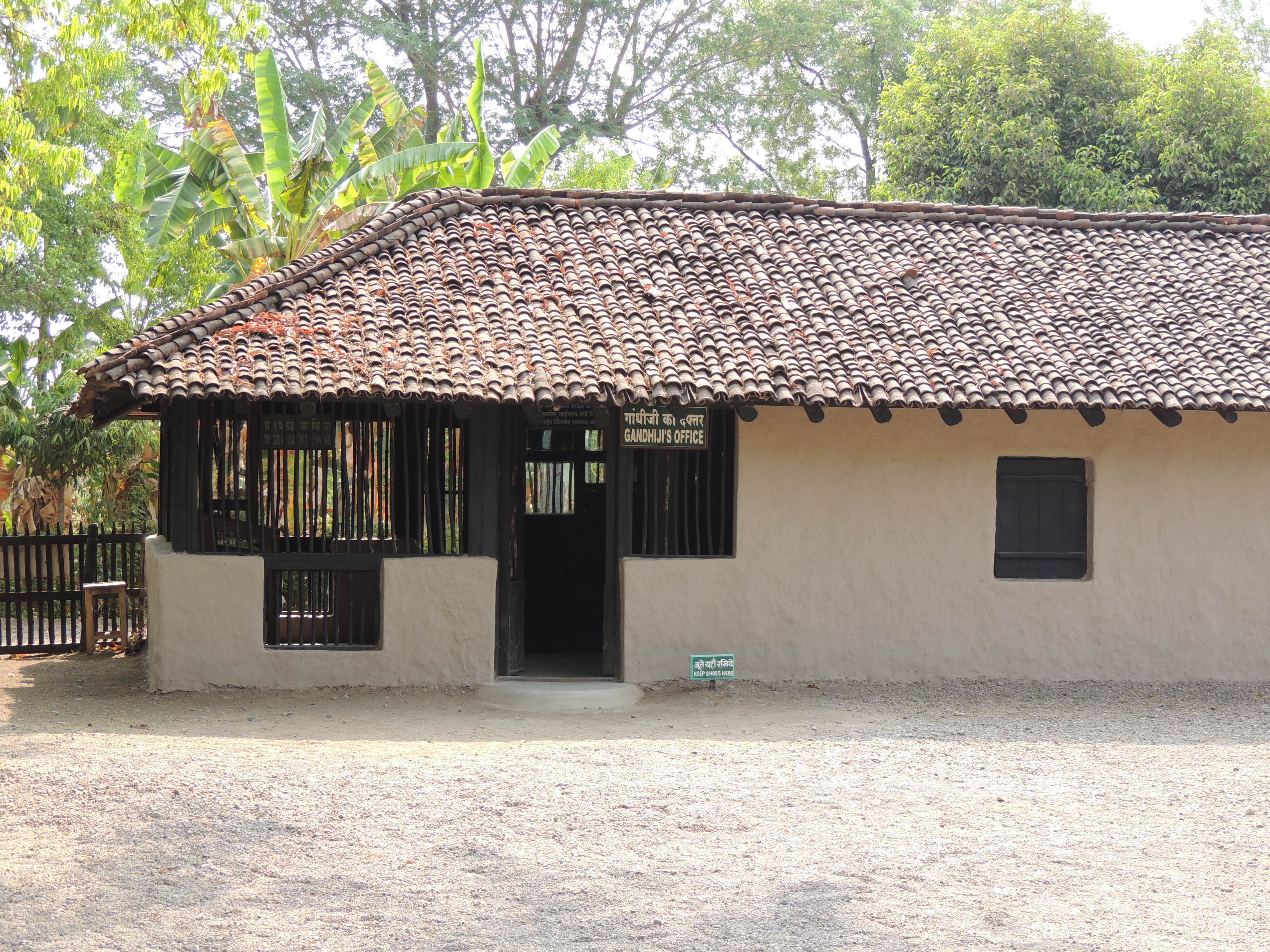 गांधी सेवाग्राम आश्रम समिती हया संस्थेमार्फत चालवण्यात येणार्या आश्रमासमोरच्या उपाहार गृहाजवळ आमची टेम्पो ट्रॅव्हलर बस थांबली. सकाळचा अगदी सात्विक नाष्टा करून आम्ही सेवाग्राम आश्रम परिसरामध्ये गेलो. सेवाग्राम आश्रमाच्या परिसरात अतिशय शांतता होती. आश्रमाचा परिसर अगदी स्वच्छ आणि नीटनेटका होता. आश्रमाच्या मुख्य दरवाज्यातून प्रवेश करताच उजव्या हाताला खादीभांडार आणि पुस्तकांचे दुकान आहे. इथून पुढे संपूर्ण आश्रमाचा परिसर नजरेच्या टप्प्यात येतो. मधोमध प्रांगणात असलेले विस्तीर्ण प्रार्थनास्थळ आणि त्याच्या आजूबाजूला दगडमातीची झोपडी वजा कुटीरं! आदि-निवास, बापु-कुटी, बा-कुटी, अंतिम निवास स्थान, परचुरे कुटी अशी अनेक कुटीरे आहेत.