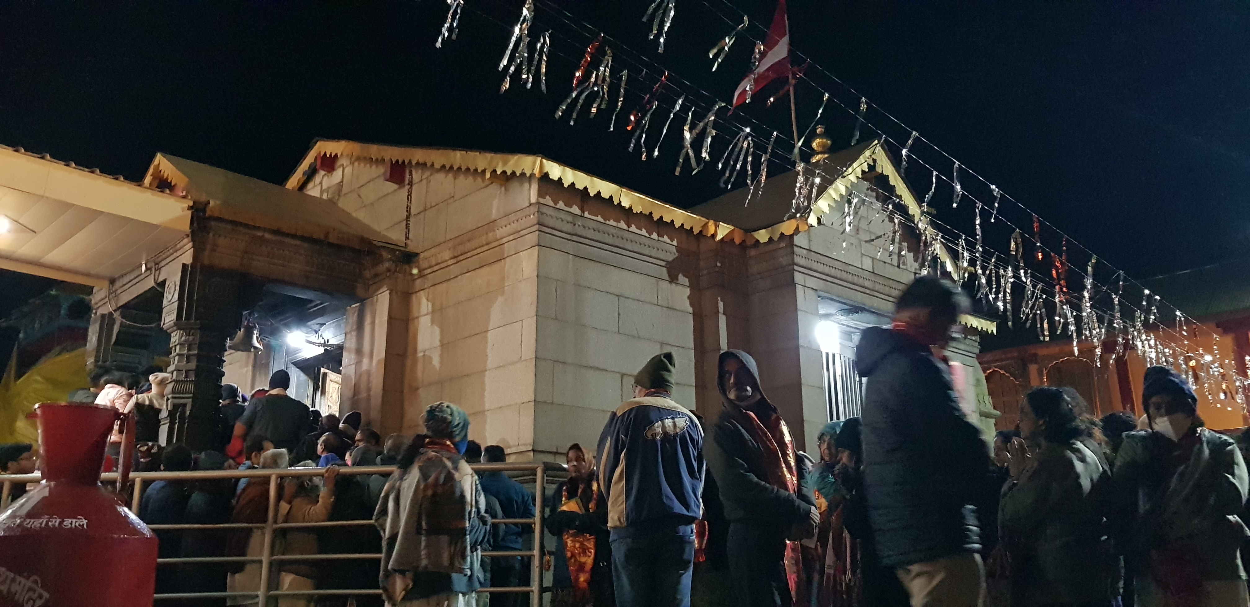 आम्ही यूथ हॉस्टेलवर पोहोचताक्षणी तेथील वीज गायब झाली. त्यामुळे आम्ही सर्व लगबगीने आवरून मंदिराच्या दिशेने निघालो. युथ हॉस्टेलपासून पायी साधारण दीड किलोमीटर अंतरावर बद्रिनाथ मंदिर आहे. आम्ही मंदिराजवळ पोहोचेपर्यंत संध्याकाळचे साडेसात वाजलेले होते. गावामधील छोट्या मोठ्या गल्ली बोळांमधून मंदिर परिसरात असलेल्या दुकानांच्या गर्दीतून वाट काढत मंदिराजवळ असलेल्या लोखंडी पुलापाशी पोहोचलो.
