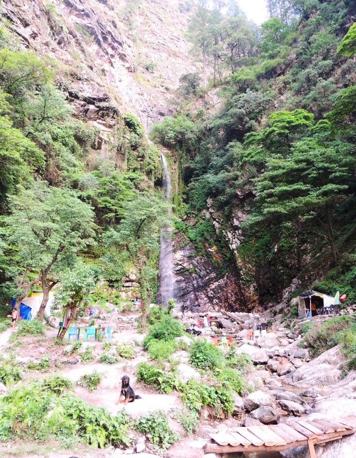 अतिशय गर्द जंगल परिसर आणि वनराजी असलेल्या एका डोंगरमाथ्यावरून छोई धबधब्याचे पाणी एक लयीत कोसळत होते. उन्हाळ्यामुळे कदाचित पाण्याचा आवेग कमी होता. संध्याकाळच्यावेळी स्तब्धपणे निसर्गाच्या सान्निध्यात तल्लीन होऊन बसण्यासारखे ठिकाण होते! परंतु गावातील लोकांनी वाढत्या पर्यटक संख्येमुळे धबधब्याच्या खालच्या बाजूला मॅगी-चहाच्या एक दोन टपऱ्या टाकलेल्या होत्या. लाकडी बाकडे, खुर्च्या टाकून पाण्याच्या प्रवाहाशेजारी बसण्याची सोय केलेली होती. फार वर्दळ नव्हती. त्यामुळे शांततेचा आनंद घेता आला. दिवस मावळायच्या आधी जंगलामधून गावाच्या दिशेने लवकर जाणे आवश्यक होते. आम्ही काढता पाय घेतला आणि पुन्हा गावाजवळ आलो. एका ठिकाणी उंच टेकाडावरून तीर्थन व्हॅली मध्ये वसलेल्या खोऱ्याचे विहंगम दृश्य दिसत होते. क्षितिजावर लाल कुसुंबी छटा फाकलेल्या होत्या आणि सूर्यदेव निरोप घेत होता.