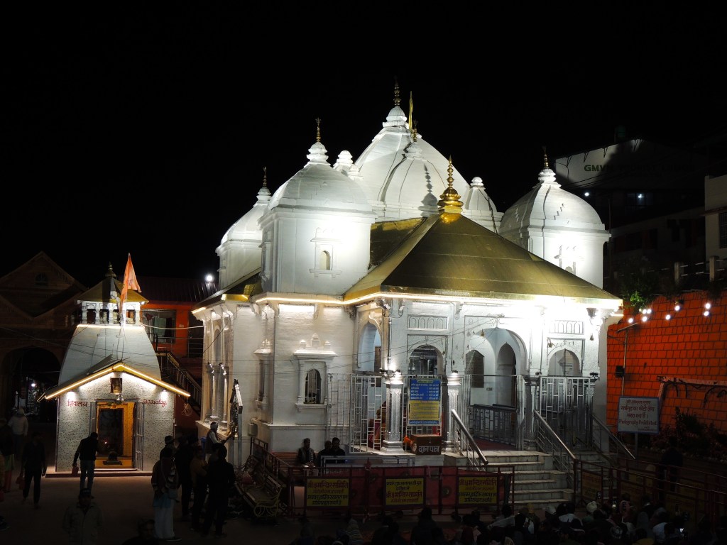 गंगोत्री मंदिराच्या प्रांगणात प्रवेश केल्यावर मला दोन वर्षापूर्वीची चारधाम यात्रेमध्ये झालेली गंगोत्री धामाची धावती भेट आठवली. त्यावेळी भर दुपारी कुंद ढगाळ हवामान आणि बोचरी थंडी होती. ह्यावेळी कदाचित मी आदल्या दिवशी गंगोत्री मुक्कामाला आल्याने हवेमध्ये सहज रुळले! पण तुलनेने हवामान छान होते. निरभ्र आकाश आणि स्वच्छ सूर्यप्रकाशामुळे दिवसभर उबदार वातावरण होते. मनसोक्त भागीरथीच्या घाटावर काही वेळ मी आणि अनिताने व्यतीत केल्यावर आम्ही सर्व गंगाआरतीचा सोहळा पहाण्यासाठी एका ठिकाणी एकत्र बसलो. गंगोत्रीला संध्याकाळी घाटावर आणि मंदिरात अशी दोन ठिकाणी गंगेची आरती केली जाते. आरतीसाठी भागीरथीच्या घाटावर आणि मंदिराजवळ सर्व भाविकांनी गर्दी केलेली होती. गंगा आरतीचा कार्यक्रम अगदी साग्रसंगीत पार पडला. गंगारतीनंतर येथे सर्व भाविकांना गरम चहा आणि प्रसाद दिला जातो.