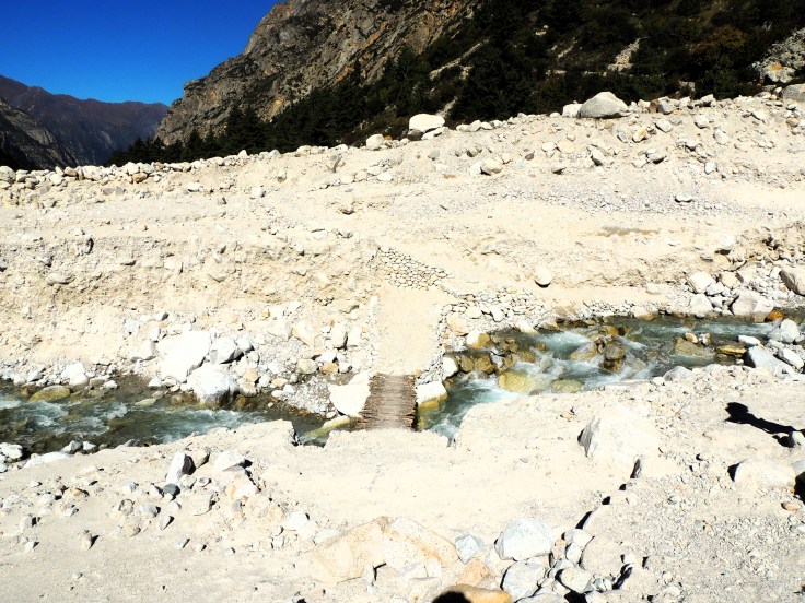 विलासने तपोवनातून थेट भोजबासाकडे जाणे पसंत केल्याने, मी एकटीच गाइड सोबत गौमुख पर्यंत गेले, आणि तिथून पुन्हा भोजबासाकडे माघारी निघाले. पुन्हा पुन्हा मागे वळून त्या भव्य शिखरांची नजरभेट करत राहिले. साधारण दुपारी साडेतीन-पावणेचारच्या सुमारास मी भोजबासाच्या ट्रॉली पॉइंटजवळ पोहोचले. तिथे भागीरथीचे पात्र पार करून पुन्हा भोजबासा पडावाकडे जाण्यासाठी रांग लागलेलीच होती! कंटाळवाण्या तासभराच्या प्रतीक्षेनंतर मी आमच्या भोजबासाच्या आश्रमाजवळ पोहोचले.