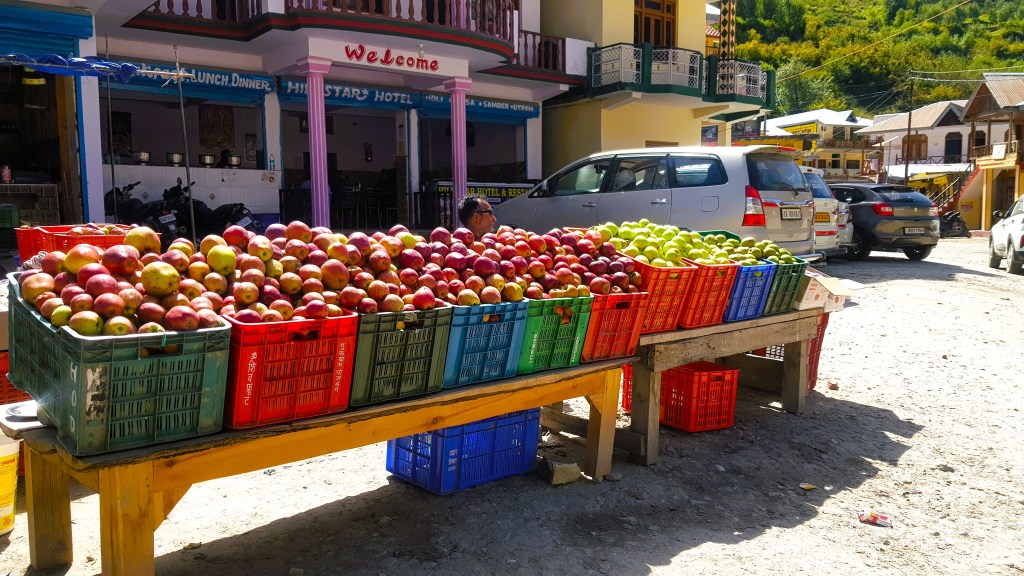 धरालीच्या बाजारात अजूनही सफरचंदे विकण्यासाठी स्थानिक व्यापारी बसलेले होते! हर्षिल खोरे तेथील चविष्ट आणि रसाळ सफरचंदासाठी सुद्धा प्रसिद्ध आहे. ह्या सफरचंद लागवडीची सुद्धा एक रंजक गोष्ट सांगितली जाते. विल्सन नावाचा एक ब्रिटिश अधिकारी ईस्ट इंडिया कंपनीच्या माध्यमातून भारतात आला. ब्रिटिश सैन्यात काम करणाऱ्या ह्या अधिकाऱ्यावर हिमालयाच्या नैसर्गिक सौंदर्याने गारुड केले आणि तो हर्षिल मध्ये स्थायिक झाला. तिथे त्याने सफरचंदाची बागायती लागवड सुरू केली, मुखबा गावातील स्थानिक महिलेशी विवाह करून हर्षिलचाच रहिवासी झाला. आज सफरचंदे हे हर्षिल खोऱ्याचे नगदी पीक आहे असे म्हटले तरी वावगे ठरणार नाही! बाजारात “विल्सन”नावाने सफरचंदे विकली जातात!