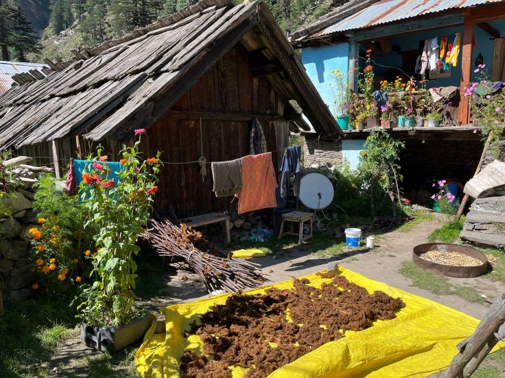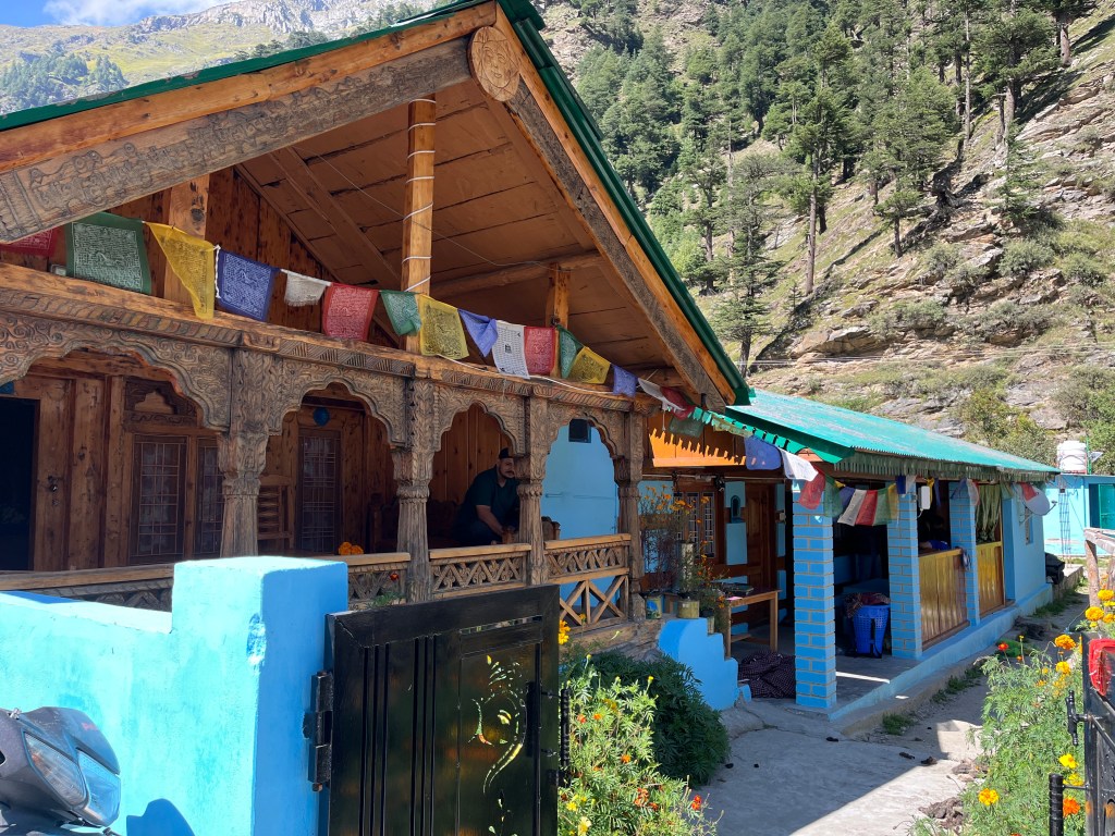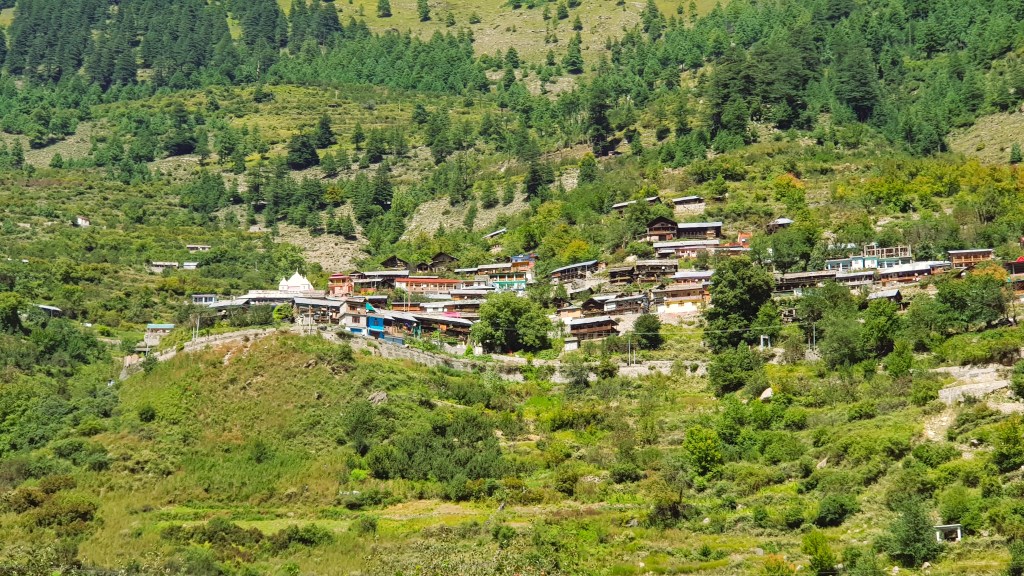 नैसर्गिकरित्या उपलब्ध असणार्या देवदार वृक्षाचे लाकूड, दगड यांचा वापर करून उत्तराखंडमधील “कोटिबनल” अथवा हिमाचली “काठकुनी” ह्या पारंपरिक बांधकाम तंत्राने घरे बांधलेली आहेत. गाव अगदी वैशिष्ट्यपूर्ण आहे. घरांच्या भिंतीवर रंगीबेरंगी आकर्षक चित्रे काढलेली आहेत. गावातून फेरफटका मारत असताना घरांची नितांत सुंदर मांडणी आपले लक्ष वेधून घेते. मंदिरे आणि बौद्ध मठाचे अस्तित्व गावात प्रचलित असणारी हिंदू-बौद्ध धर्माची सांगड सुस्पष्ट करीत होती.