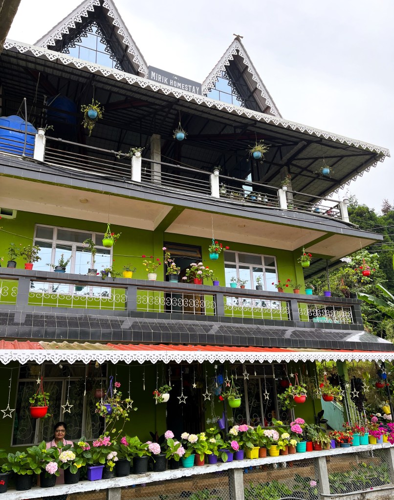 दुसर्या दिवशी सकाळी उठल्यावर होम स्टेच्या परिसराचा खरा अंदाज आला! होम स्टेच्या संपूर्ण परिसरामध्ये विविध रंगाची फुले आणि विविध प्रकारचे कॅक्टस कुंड्यांमधून निगुतीने वाढविलेले दिसत होते. स्वत: सुषमा ज्या भागात राहत होती त्या घराच्या गच्चीमध्ये लटकणाऱ्या छोट्या कुंड्यांमधून विविध प्रकारची फुलझाडे लावलेली होती. हायड्रेंजिया प्रजातीची विविध रंगाची फुले बहरलेली दिसत होती. होम स्टेच्या लगतच समोर ‘प्रधान होम स्टे’ दिसत होता. तो होम स्टे त्यांच्या कोण्या नातेवाईकांचा असल्याची माहिती रुपकने दिली. आजूबाजूला इतरांची रहिवासी घरे दिसत होती. एकंदरीत सर्व निवासी परिसर वाटत होता. होम स्टेच्या गच्चीमधून मिरीक तलावाचा शेवटचा भाग आणि समोरच्या डोंगरावर मोनेस्ट्री दिसत होती. समोर दूरवर दिसणार्या डोंगरांवर हिरवीगार वृक्षराजी डवरलेली होती आणि त्यावर धुक्याच्या झूली लडिवाळपणे सलगी करत होत्या. अहाहा काय प्रसन्न सकाळ होती!