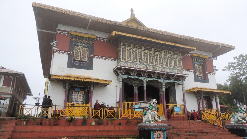 पूर्वेकडे सूर्य लवकर मावळत असल्याने पर्यटन स्थळे लवकर बंद होतात. आमच्या आजच्या यादीमधील दोन स्थळे अद्याप शिल्लक होती. आम्ही पुन्हा पेलिंग शहराच्या दिशेने निघालो. पेलिंगपासून अगदी जवळच लामा ल्हात्सून खेमो यांनी वसवविलेली सिक्किममधील प्राचीन आणि प्रसिद्ध मोनेस्ट्री आहे. एका टेकडीच्या माथ्यावर असलेली ही मोनेस्ट्री पेलिंग पासून दोन किलोमीटर अंतरावर मुख्य रस्त्यावरच आहे. मुख्य रस्त्यावरून डोंगर वळणाच्या रस्त्यावरून आमची गाडी मोनेस्ट्रीच्या वाहनतळामध्ये येऊन थांबली. लोचेनने आम्हाला मोनेस्ट्री दर्शनासाठी मर्यादित वेळ आखून दिला. कारण आम्हाला अजून एका ऐतिहासिक वारसा स्थळाला भेट द्यायची होती. आम्ही लगबगीने मोनेस्ट्रीच्या प्रवेशद्वारामधून तीन मजली इमारतीच्या परिसरात प्रवेश केला. धुक्याने सर्व परिसर व्यापलेला होता. पावसामुळे वातावरण कुंद झालेले होते. मोनेस्ट्री दोहोंबाजूंनी बर्फाच्छादित पर्वतांच्या निसर्ग रम्य पार्श्वभूमीवर वसवलेली आहे.