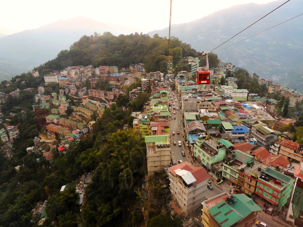 गंगटोक शहराचे, आजूबाजूच्या परिसराचे आणि सभोवार पसरलेल्या हिमालयीन पर्वत रांगांच्या दृश्याचा आनंद घेण्यासाठी गंगटोक रोपे वे म्हणजे केबल राईडचा अनुभव घेतलाच पाहिजे! सुमारे एक किलोमीटर लांबीच्या ह्या केबल राईडमध्ये तीन प्रवेशाची ठिकाणे आहेत. अगदी खालच्या स्तरात देवरालीपासून सुरू होऊन शहराचा उंच भाग ताशीलिंग येथील सिक्कीम राज्य विधानसभा गृहापर्यंत ह्या केबल राईडचा आनंद घेता येतो. साधारण १५ ते २० मिनिटांच्या केबल राईड मध्ये गंगटोक बाजार, सभोवताल दिसणारी दरी-खोरी, आणि गंगटोक शहराचे विहंगम दृश्य दिसते. आम्हाला आमच्या टॅक्सी चालकाने वज्र परिसराकडून रोपे वे सुरू होतो, त्या देवराली स्टँडवर आणून सोडले आणि सिक्किम राज्याच्या राज्य विधानसभा गृहापाशी जाऊन थांबला. आम्ही देवराली ते सिक्कीम राज्य विधानसभेपर्यंतचा केबल राईडचा आनंद घेऊन तेथून आमच्या गाडीने गंगटोक शहरातील फ्लॉवर एक्झिबिशन सेंटरकडे गेलो.